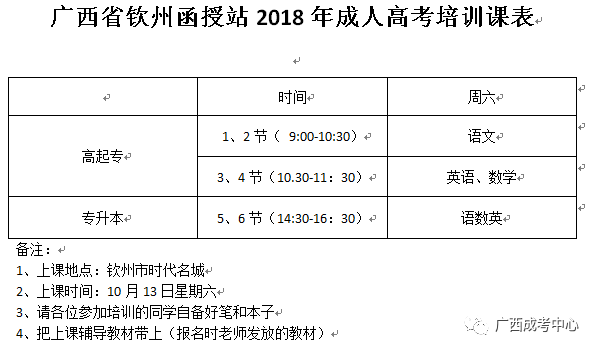关于广西钦州2018年成人高考考前辅导培训的通知 ...
